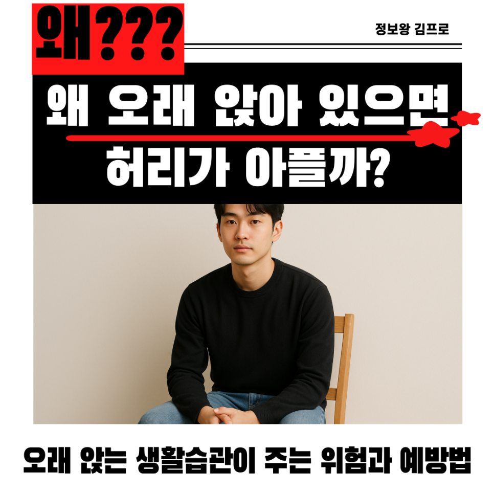 독자 여러분, 안녕하세요! 혹시 지금 이 글을 읽고 계시는 순간에도 허리 어딘가가 묵직하게 결리거나 뻐근한 느낌이 들지 않으신가요? 현대인의 대부분은 하루 종일 앉아서 일하거나 공부하거나 운전하는 시간이 길어지면서 ‘만성 허리 통증’이라는 피할 수 없는 고민을 안고 살아가고 있습니다. 단순히 자세가 나빠서 허리가 아프다고 생각하기엔, 통증의 강도와 빈도가 점점 심해지는 경우가 많죠. 하지만 걱정하지 마십시오. 오래 앉아있을 때 허리가 아픈 데에는 다 과학적인 원인이 있습니다. 이 원리를 제대로 알고 대처하면, 통증을 크게 줄이고 건강한 허리를 되찾을 수 있습니다. 오늘은 블로그 콘텐츠 전문가로서, 왜 우리가 장시간 좌식 생활을 하면 허리 통증 원인이 발생하는지 그 메커니즘을 쉽고 깊이 있게 파헤쳐 드리겠습니다. 더불어 직장에서도 일상에서도 바로 적용할 수 있는 자세 교정 팁과 예방 루틴까지 총정리했으니, 끝까지 함께하시어 ‘통증 없는 허리’를 향한 첫걸음을 떼시기를 바랍니다. 🦴 흔히 놓치는 포인트: 앉아있는 자세가 서 있는 자세보다 더 허리에 해롭다? (척추 압력, 디스크 부담, 중력) ⚖️ 앉아있을 때 척추가 받는 엄청난 압력 많은 분들이 서 있거나 무거운 것을 들 때 허리에 가장 큰 무리가 간다고 생각하시죠? 하지만 놀랍게도 가만히 ‘앉아있는’ 자세가 서 있는 자세보다 허리 디스크(추간판) 에 더 큰 압력을 가한다는 것이 과학적으로 밝혀져 있습니다. 서 있을 때 우리 척추가 받는 척추 압력을 100으로 본다면, 허리를 쭉 펴고 바르게 앉아있을 때의 압력은 140~150에 달합니다. 심지어 의자에 비스듬히 기대거나 허리를 굽히고 숙이는 나쁜 자세에서는 이 압력이 180~200까지 치솟게 됩니다. 디스크 입장에서 보면 쉬지 못하고 계속 눌리고 있는 상황인 셈입니다. 💧 ‘디스크 수분 손실’과 중력의 영향 척추 사이의 디스크는 수분으로 가득 찬 젤리 같은 구조물로, 충격을 흡수하는 스프링 역할을 합니다. 앉아있는 동안 지속적인 중력과 압력 때문에 디스크 내부의 수분이 서서히 손실됩니다. 오래 앉아있을수록 디스크는 납작해지고 유연성을 잃어 충격 흡수 능력이 떨어지게 됩니다. 결국 장시간 앉아있는 것은 단순한 근육 통증을 넘어 디스크 부담을 가중시키고 퇴행성 변화를 촉진하는 가장 주요한 요인입니다. 제가 보기엔 이 ‘앉아있는 시간’을 의식적으로 줄이는 것이 허리 건강의 가장 핵심적인 방어막이라고 생각됩니다. 📈 단계별 핵심 설명: ‘나쁜 자세’가 만드는 허리 통증 악순환 메커니즘 (골반 후방 경사, 코어 약화, 근육 불균형) 🍑 엉덩이 근육 마비와 ‘골반 후방 경사’ 앉아있는 동안 우리 몸에는 치명적인 자세 변화가 일어납니다. 바로 골반 후방 경사입니다. 정상적인 허리(요추) 는 약간 앞으로 휘어진 S자 곡선을 유지해야 충격 흡수에 유리한데, 앉아있으면 골반이 뒤로 넘어가며 허리가 일자(혹은 C자) 형태로 펴집니다. 이 자세에서는 무거운 상체의 하중이 디스크의 특정 부분에만 집중되어 압력이 극심해집니다. 또한 오랜 좌식 생활로 엉덩이 근육(둔근)이 제대로 사용되지 않아 약해지고, 이 약해진 엉덩이 근육의 일을 허리 근육이 대신하려 하면서 과부하가 걸려 통증이 발생합니다. 💪 복부 심층 근육의 ‘코어 약화’